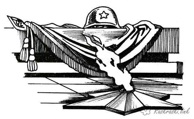 Вічний вогонь . Раскраска розмальовки день перемоги, розмальовки 9 травня, розмальовки вічний вогонь, каска завантажити бесплатно онлайн