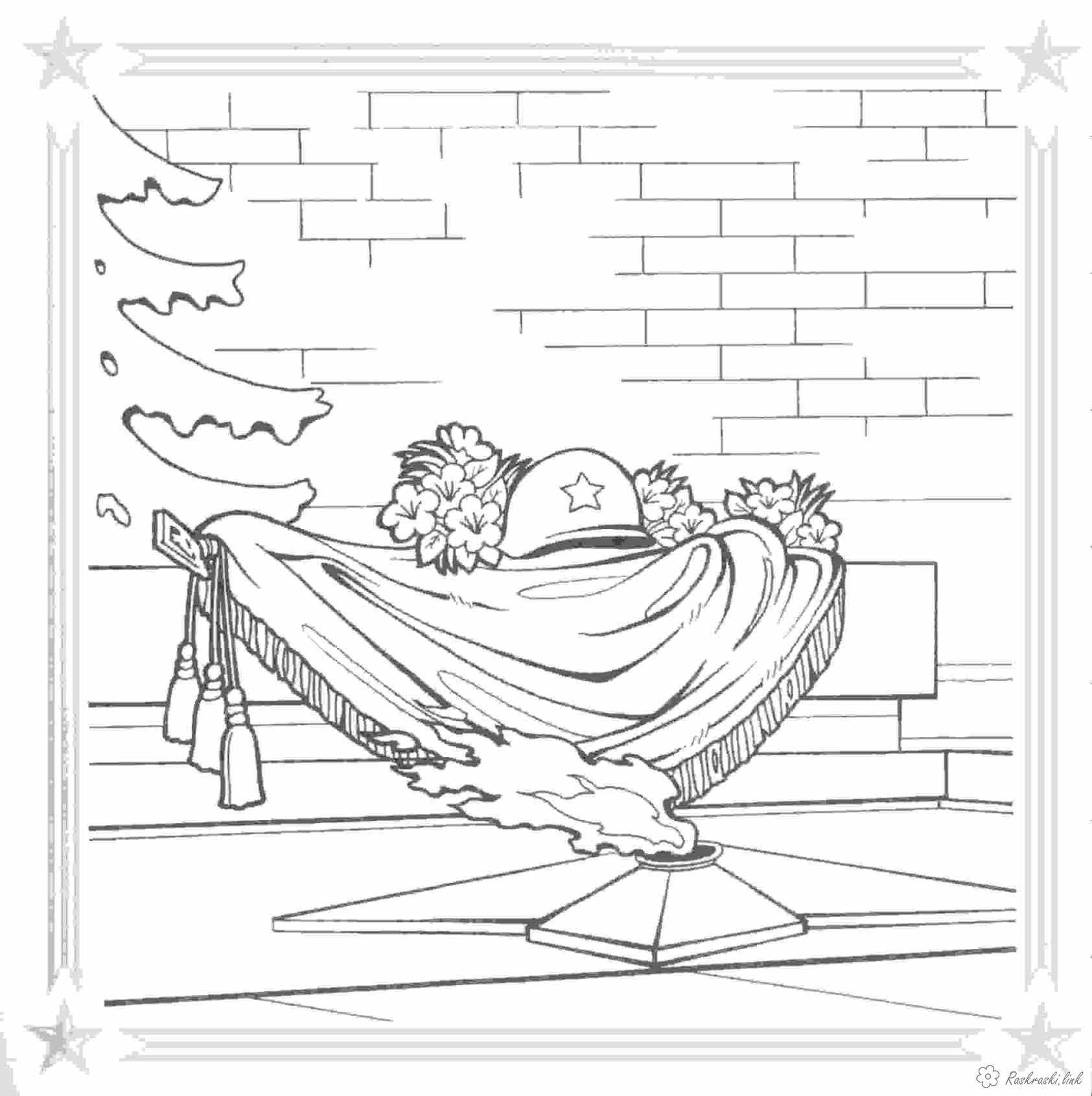 Вічний вогонь і каска. Раскраска розмальовки день перемоги, розмальовки 9 травня, розмальовки вічний вогонь, каска, квіти завантажити бесплатно онлайн