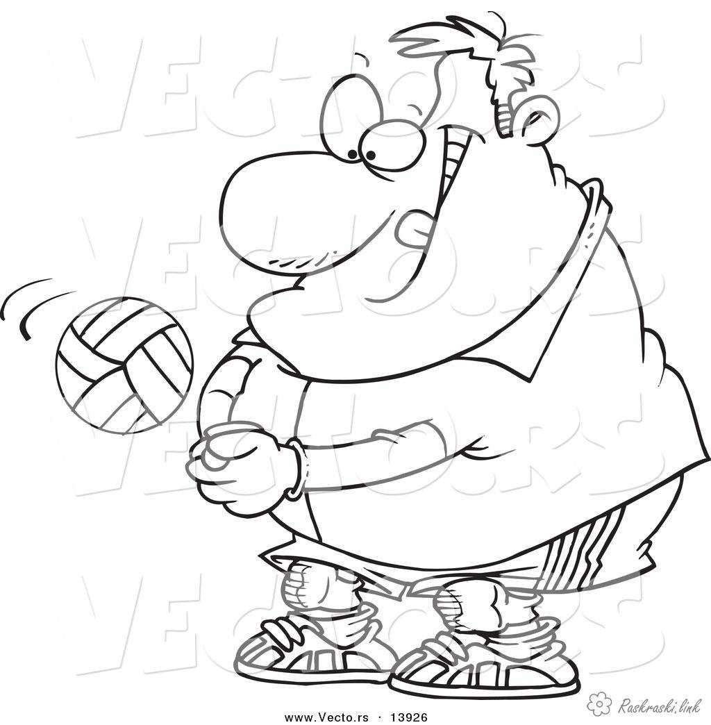 толстячок грає у волейбол. Раскраска волейбол, м'яч, мжчіна, спорт завантажити бесплатно онлайн