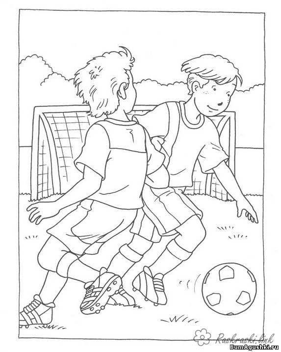 хлопчики грають в футбол. Раскраска футбол, грають, спорт, ворота завантажити бесплатно онлайн