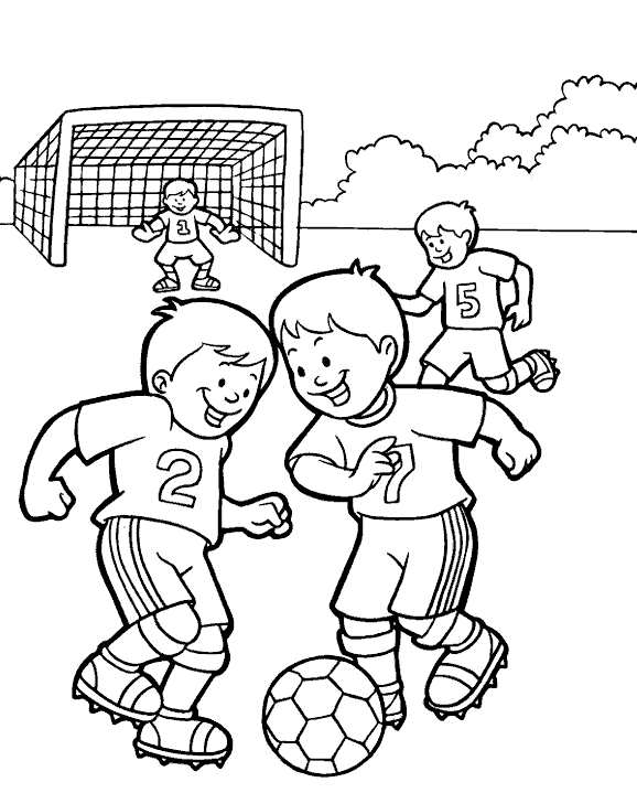 Хлопчики грають у футбол біля воріт. Раскраска ворота, футбол, хлопчики, футбольний м'яч завантажити бесплатно онлайн