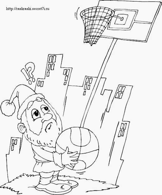 гномик на майданчику. Раскраска гномик, м'яч, майданчик, вулиця, басктебол завантажити бесплатно онлайн