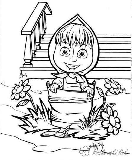 Маша і Ведмідь . Раскраска розмальовки для дітей, маша, квіти, ганок завантажити бесплатно онлайн