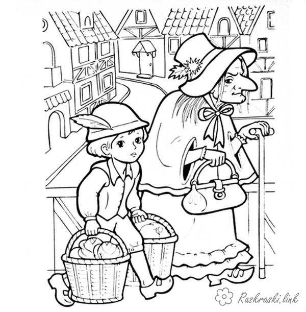 Старуха уводит Якоба к себе в замок. Раскраска карлик нос, раскраска, мультфильм, Гауф, капуста, старуха, мальчик, Якоб, зловредный завантажити бесплатно онлайн