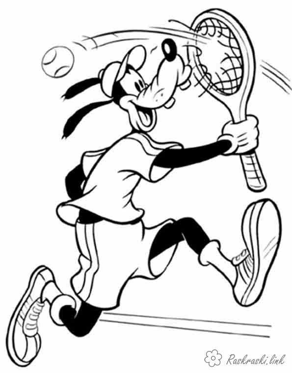 гуфі грає в теніс. Раскраска гуфі, теніс, спорт завантажити бесплатно онлайн