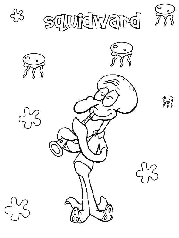 Сквідворд грає на дудці. Раскраска Сквідворд, дудка, розмальовки завантажити бесплатно онлайн