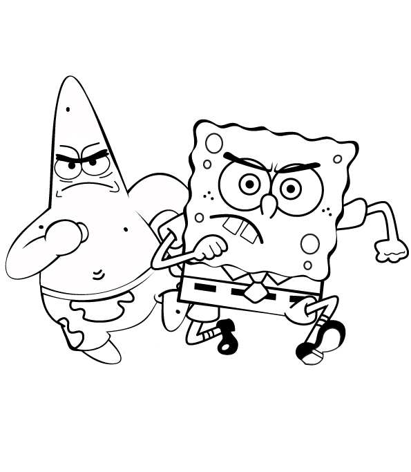 Спанч боб і Патрік біжать. Раскраска Спанч боб і Патрік Біжать злі. завантажити бесплатно онлайн