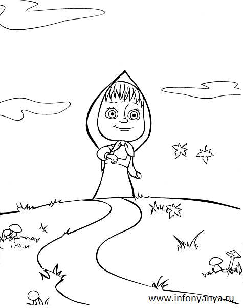 Маша гуляє в полі. Раскраска розфарбування маша і ведмідь, дорога, поле, трава завантажити бесплатно онлайн