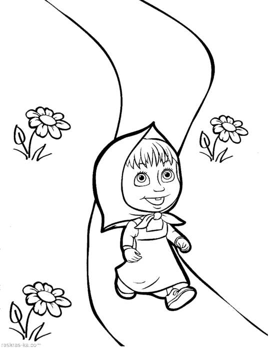 маша гуляє в полі . Раскраска розфарбування, маша, дорога, ліс, поле завантажити бесплатно онлайн