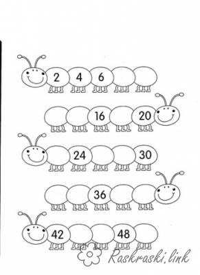 Обчисли закономірність і розфарбуй гусеницю. Раскраска математичні розмальовки для дошкільнят, навчальні розмальовки, обчислювальних закономірність, гусениця завантажити бесплатно онлайн
