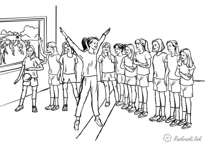 команда гімнасток. Раскраска гімнастика, команда, спорт, дівчата завантажити бесплатно онлайн