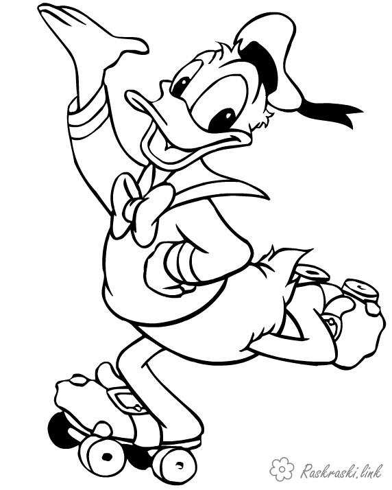 Дональд Дак на роликах. Раскраска Ролики, розфарбування, ДональдДак завантажити бесплатно онлайн