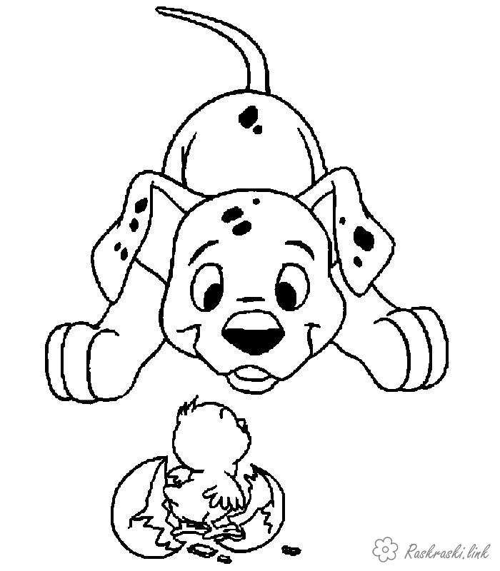 далматинець і курча. Раскраска 101 далматинець, курча, дисней, розмальовки завантажити бесплатно онлайн
