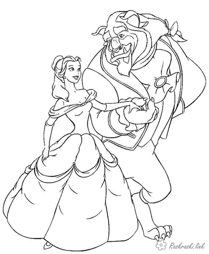 Красуня і чудовисько. Раскраска красуня і чудовисько, чудовисько, девушка, танец, розмальовки, розмальовки з мультфільмів завантажити бесплатно онлайн