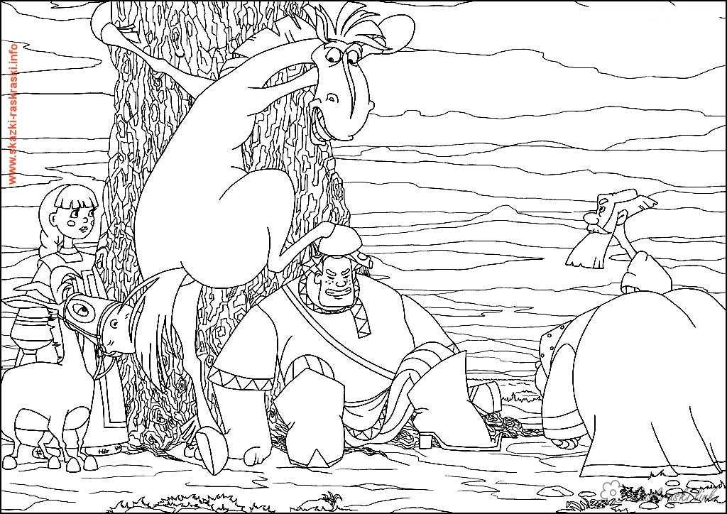 юлий забирается на дерево. Раскраска раскраски, Алеша Попович и Тугарин Змей, юлий, моисей, тихон завантажити бесплатно онлайн