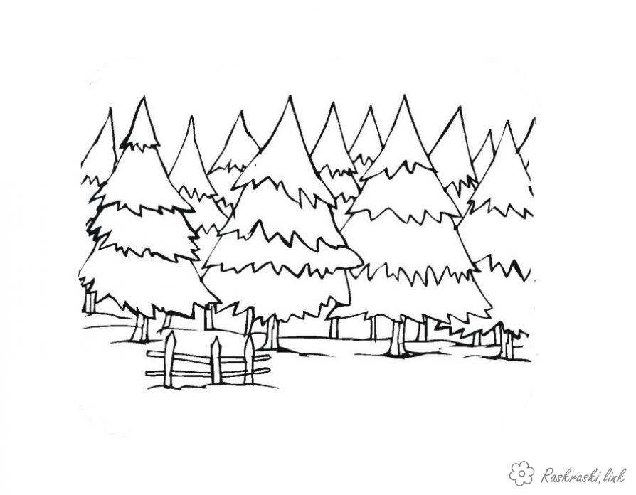 розфарбування багато дерев. Раскраска розфарбування ліс, багато ялинок, красиві дерева завантажити бесплатно онлайн