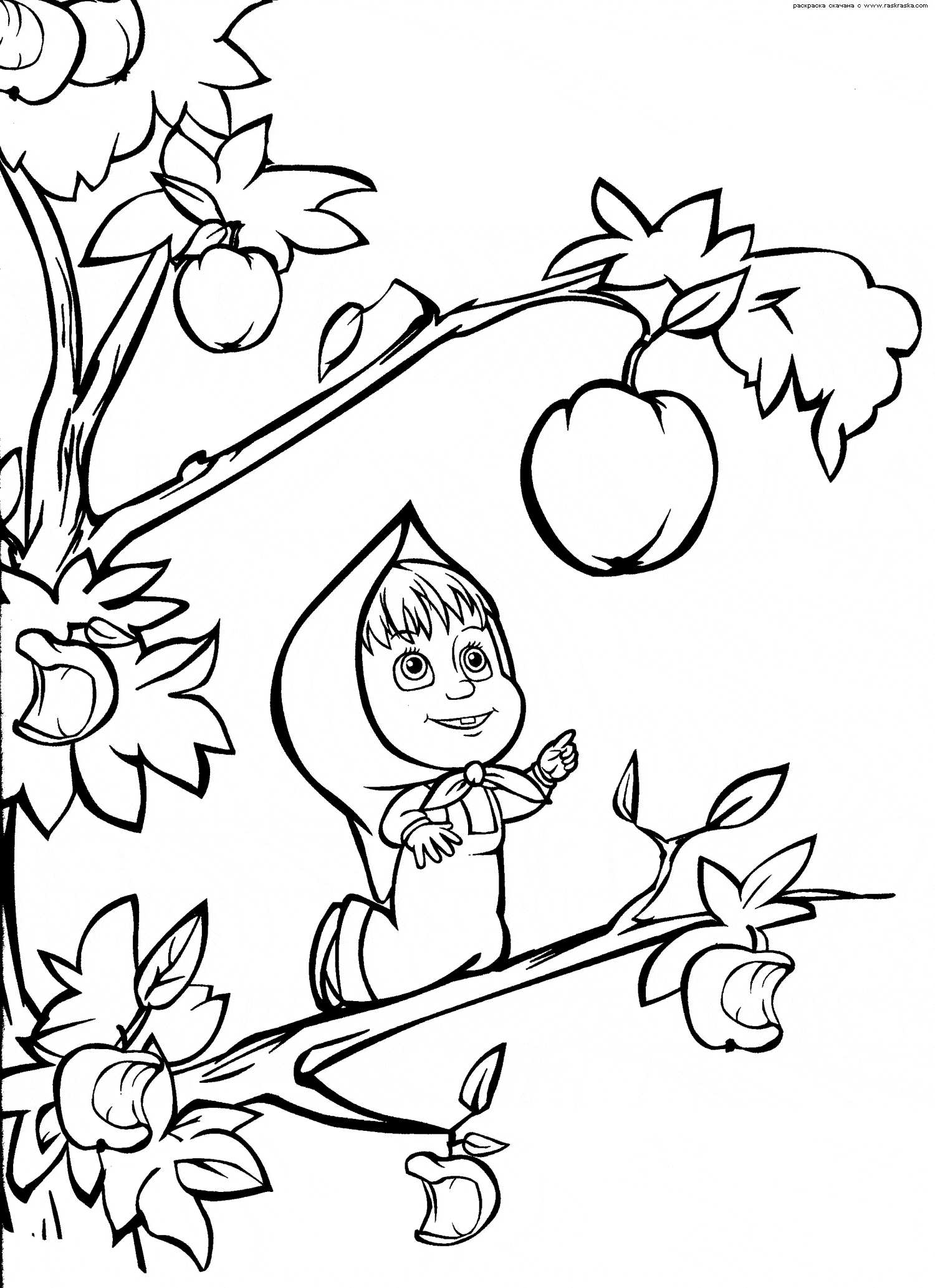 Маша хоче зірвати яблуко, розфарбування. Раскраска Маша, яблуко, дерево, Маша і Ведмідь, розмальовки дитячі завантажити бесплатно онлайн