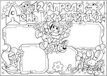розфарбування листівка до дня космонавтики. Раскраска розмальовки до дня космонавтики, дитячі розмальовки завантажити бесплатно онлайн