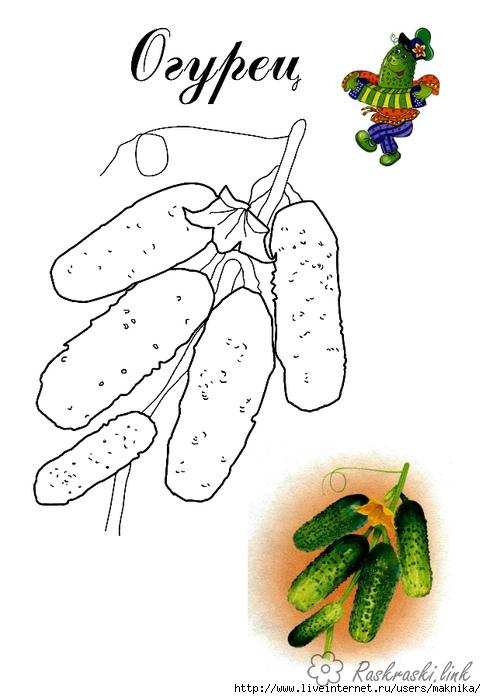 Зелений, свіжий огірок, розмальовки дитячі. Раскраска Зелений, свіжий, огірок, розмальовки дитячі завантажити бесплатно онлайн