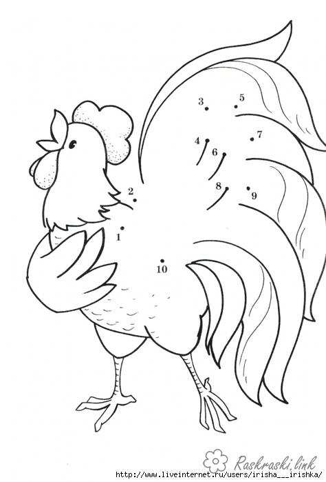 Петушок. Раскраска домалюй і розфарбуй, півник завантажити бесплатно онлайн