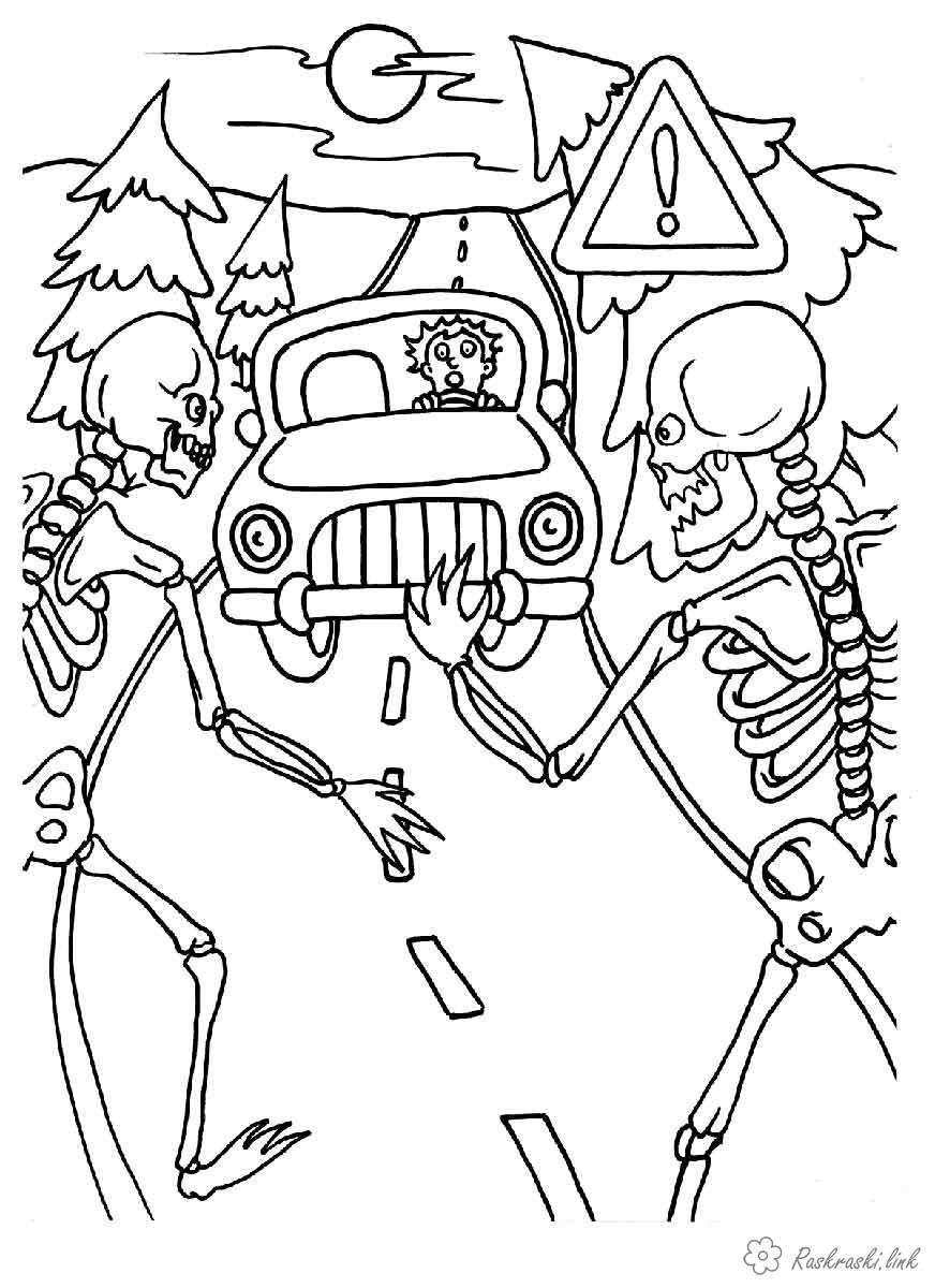 Дорожній знак інші небезпеки. Раскраска Дорожній знак інші небезпеки зі скелетами завантажити бесплатно онлайн