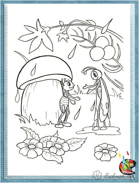 Мураха. Раскраска Радянський мультфільм, мураха, дощ, комаха, гриб завантажити бесплатно онлайн
