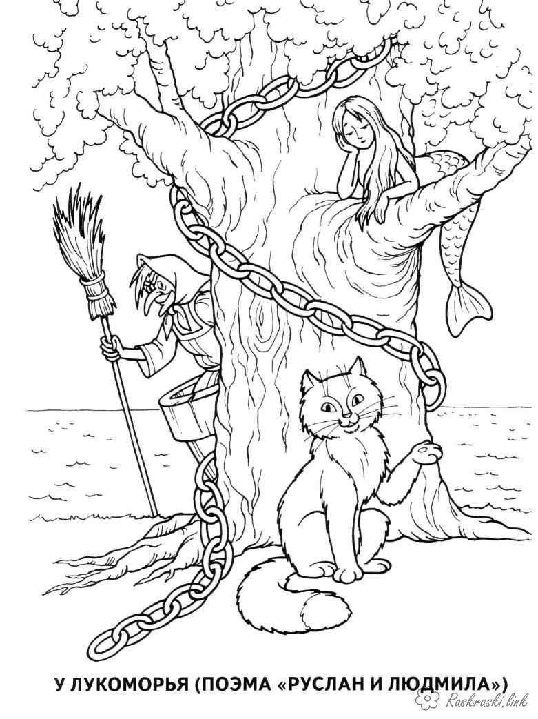 розфарбування у лукомор'я дуб. Раскраска розфарбування російська У лукомор'я дуб зелений завантажити бесплатно онлайн