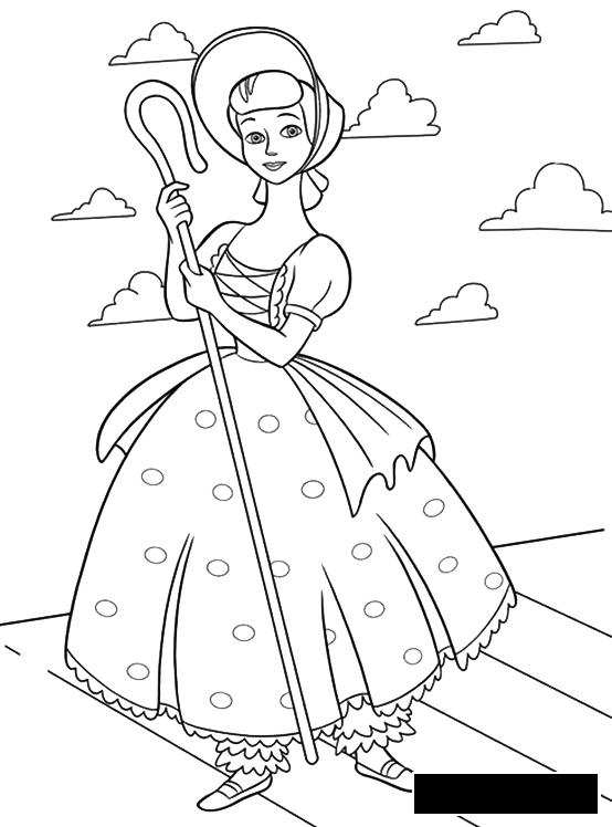 Пастушка. Раскраска Дівчинка, пастушка, капелюшок, сукня, посох завантажити бесплатно онлайн