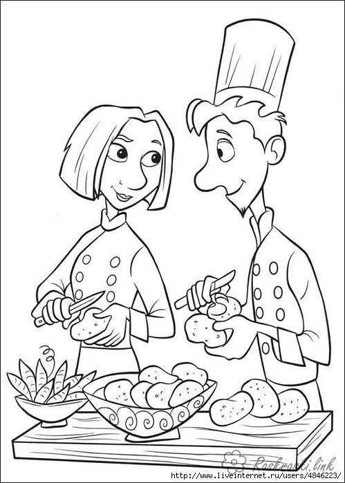 кухар з дівчиною готують. Раскраска кухар, дівчина, рататуй, розмальовки завантажити бесплатно онлайн