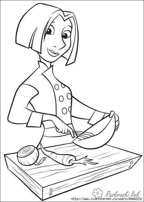 дівчина кухар. Раскраска рататуй, розфарбування, дівчина кухар завантажити бесплатно онлайн