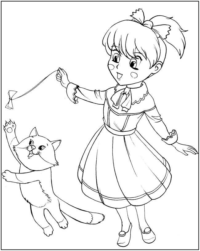 Гра. Раскраска Дівчаткам, дівчинка, гра, кошеня, метелик, іграшка завантажити бесплатно онлайн