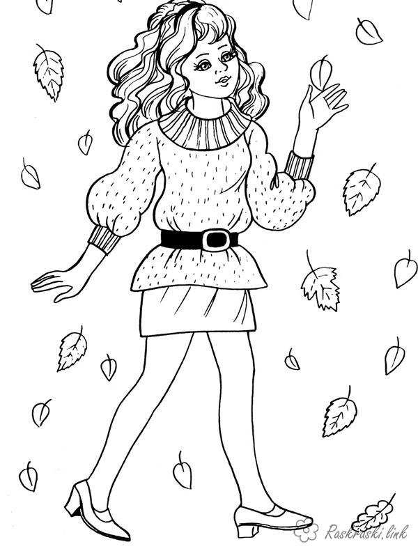 Листя. Раскраска Дівчаткам, дівчинка, листя, осінь, костюм завантажити бесплатно онлайн