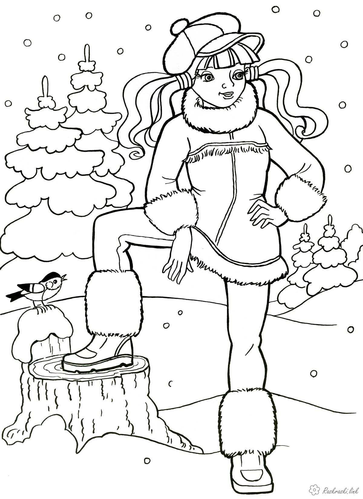 розфарбування для дівчаток "Зимовий наряд". Раскраска розфарбування для дітей, дівчинка в красивому зимовому вбранні завантажити бесплатно онлайн