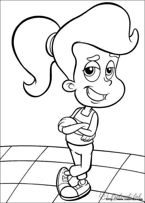 Сінді. Раскраска розмальовки мультфільми, Nickelodeon розмальовки, Джиммі Нейтрон, Сінді, дівчинка завантажити бесплатно онлайн