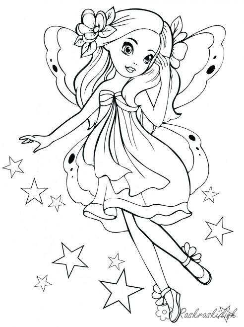 розфарбувати дівчинку. Раскраска розмальовки для дівчаток, розмальовки, фея, зірки завантажити бесплатно онлайн