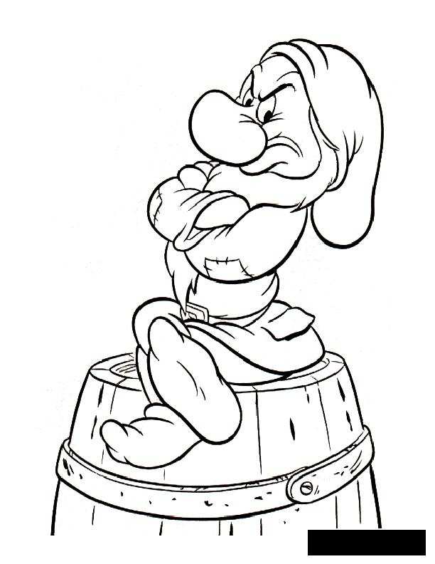 Похмурий гном. Раскраска гном, Білосніжка і сім гномів, бочка, розмальовки, розмальовки з мультфільмів завантажити бесплатно онлайн