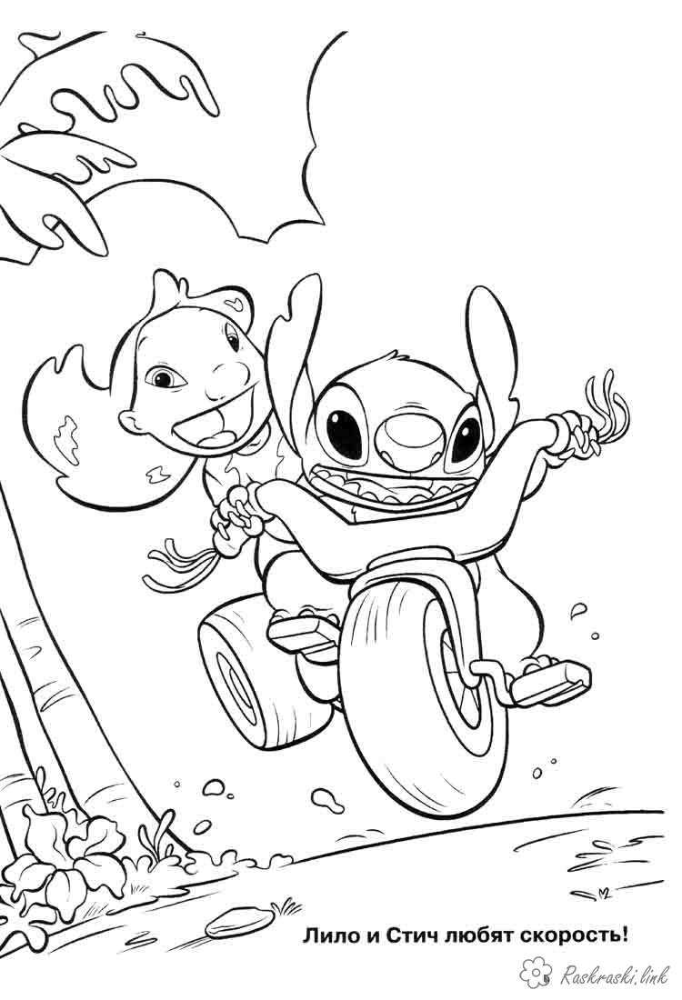 Ліло і стич катаються. Раскраска Ліло і Стіч, великий, катаються завантажити бесплатно онлайн