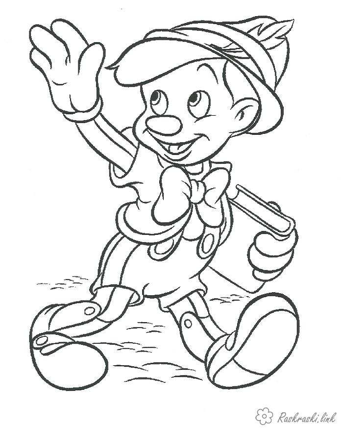 Пінокіо йде в школу. Раскраска пинокио, розмальовки завантажити бесплатно онлайн