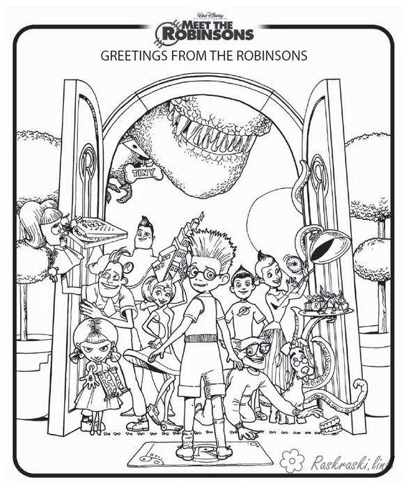 У гості до Робінсонів. Раскраска розфарбування в гості до Робінсонів, для дітей завантажити бесплатно онлайн