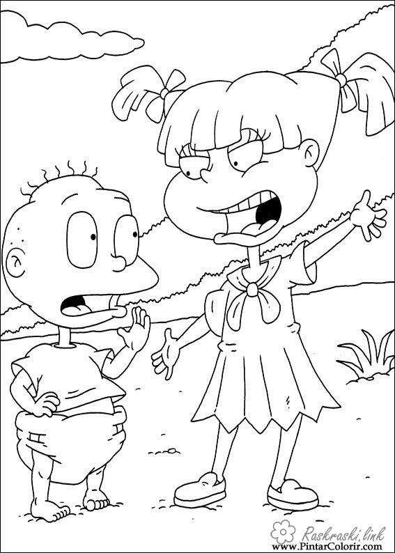 Томмі і Анжеліка. Раскраска розмальовки мультфільми, Nickelodeon розмальовки, Анжеліка, Томмі, дітки, дівчинка, хлопчик завантажити бесплатно онлайн