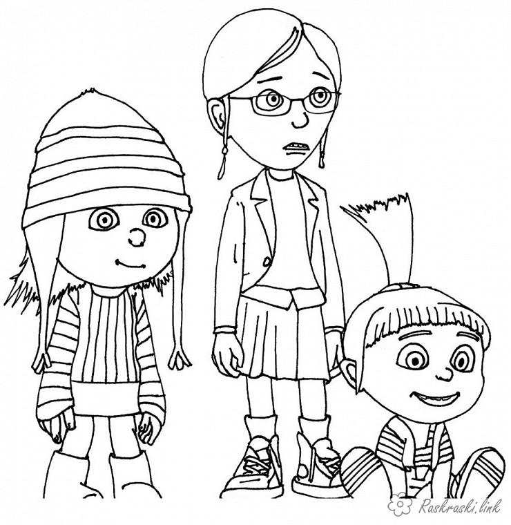 Агнес, Едіт і Марго. Раскраска бридкий я, розфарбування, Агнес, Едіт, марго, завантажити бесплатно онлайн