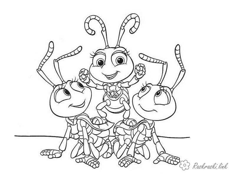 Три друга веселых жучка. Раскраска детские раскраски, насекомые, жучки, жучок завантажити бесплатно онлайн
