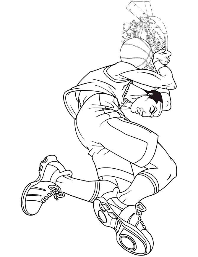 закидає м'яч у кільце. Раскраска гравець закидає м'яч у кільце, баскетбол завантажити бесплатно онлайн