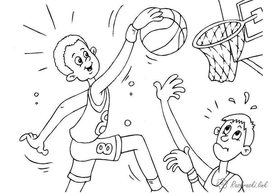 закидає м'яч. Раскраска баскетбол, спорт, гра, м'яч, кільце завантажити бесплатно онлайн