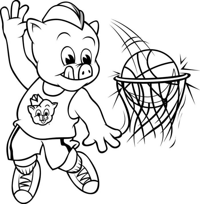 порося закидає м'яч. Раскраска порося, спорт, баскетбол, кільце, м'яч завантажити бесплатно онлайн