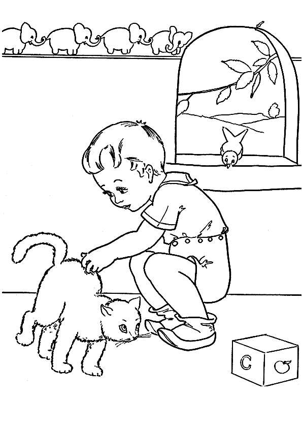 Хлопчик і кішка. Раскраска Свято 1 червня День захисту дітей хлопчик кішка завантажити бесплатно онлайн