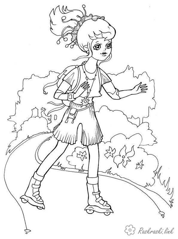 Дівчинка катається на роликах. Раскраска Свято 1 червня День захисту дітей дівчинка на роликах завантажити бесплатно онлайн