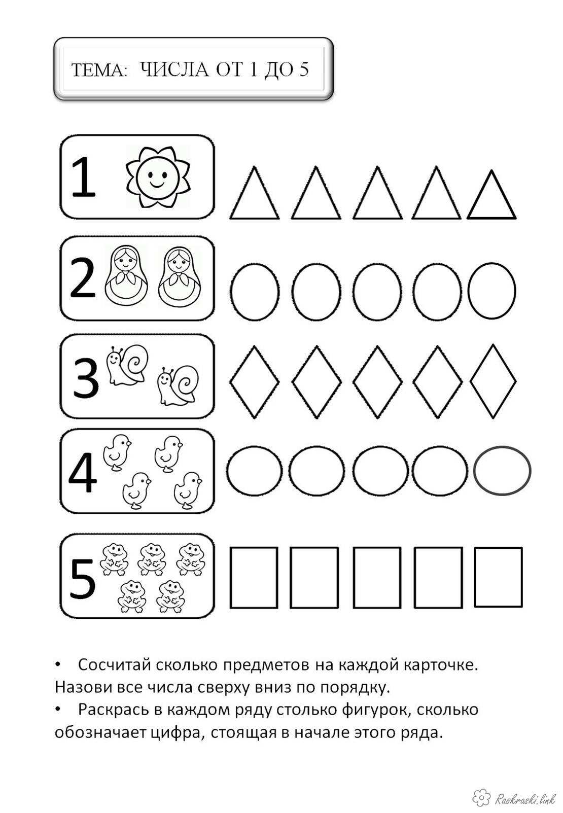 Розфарбуй за кількістю. Раскраска математичні розмальовки для дошкільнят, навчальні розмальовки, порахуй завантажити бесплатно онлайн