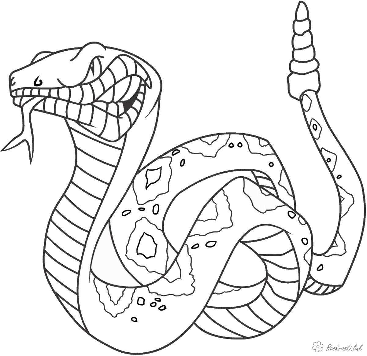 велика злюща змія. Раскраска розмальовки для дітей, злюща змія, рептилії завантажити бесплатно онлайн