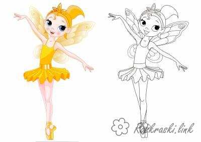 Фея танцює. Раскраска Розмальовки для дівчаток, розфарбування із зразком, дівчинка фея танцює, дівчинка у спідниці завантажити бесплатно онлайн